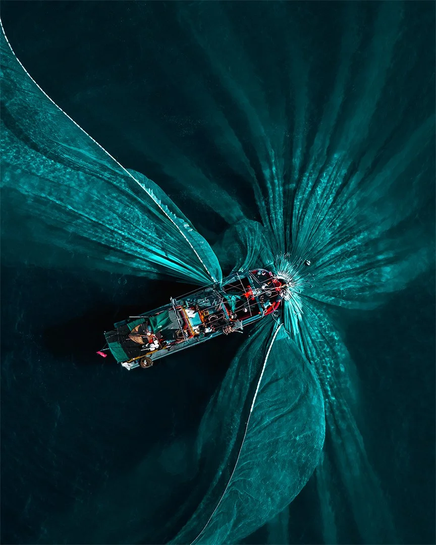 The drone photograph captures fishermen harvesting anchovies off the coast of Phu Yen in Vietnam. Amid this tranquil beauty, an undercurrent of concern adds depth to the moment. The issue of overfishing, even on this seemingly small scale, looms large, casting a shadow over the delicate balance of marine ecosystems. This scene reminds us of our interconnectedness with nature and our responsibility to act as stewards of the earth. This was part of a press release and was featured in Forbes, The Telegraph, The Guardian, BBC Wildlife amongst others.
